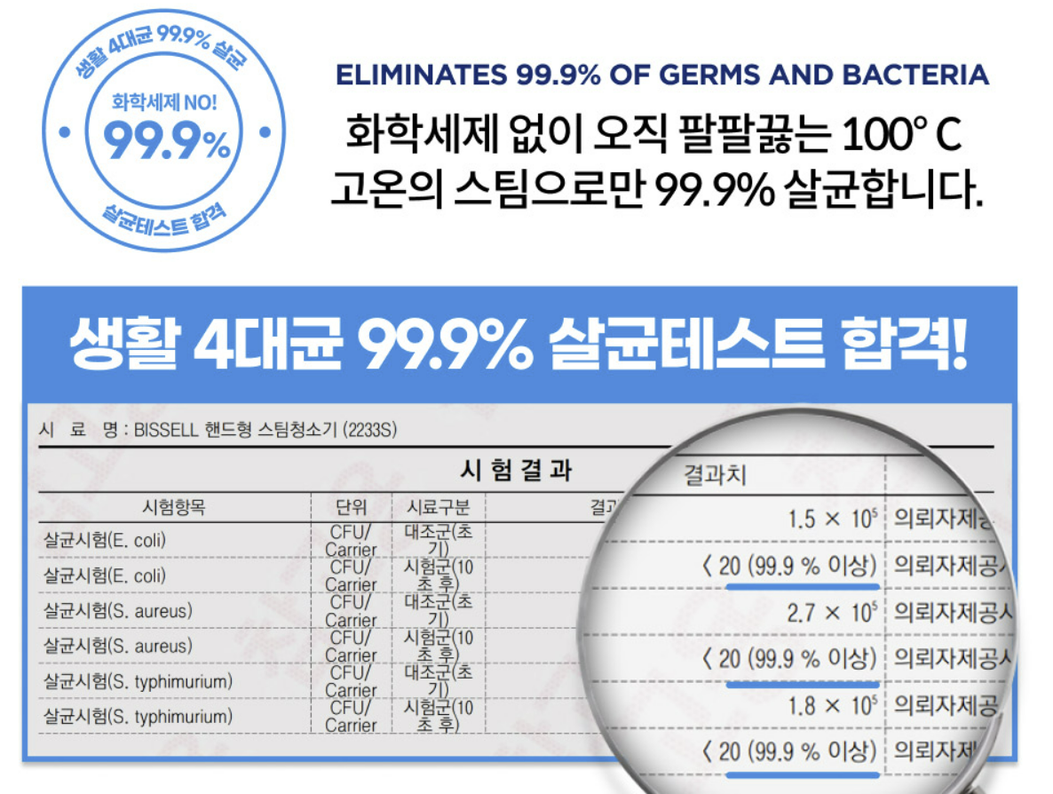 비쎌 슬림 스팀청소기는 고온 스팀(100도 이상)을 이용해 세균과 바이러스를 효과적으로 제거하며, 바닥뿐만 아니라 다양한 표면에서도 화학 세제 없이도 강력한 청소 성능을 자랑합니다.