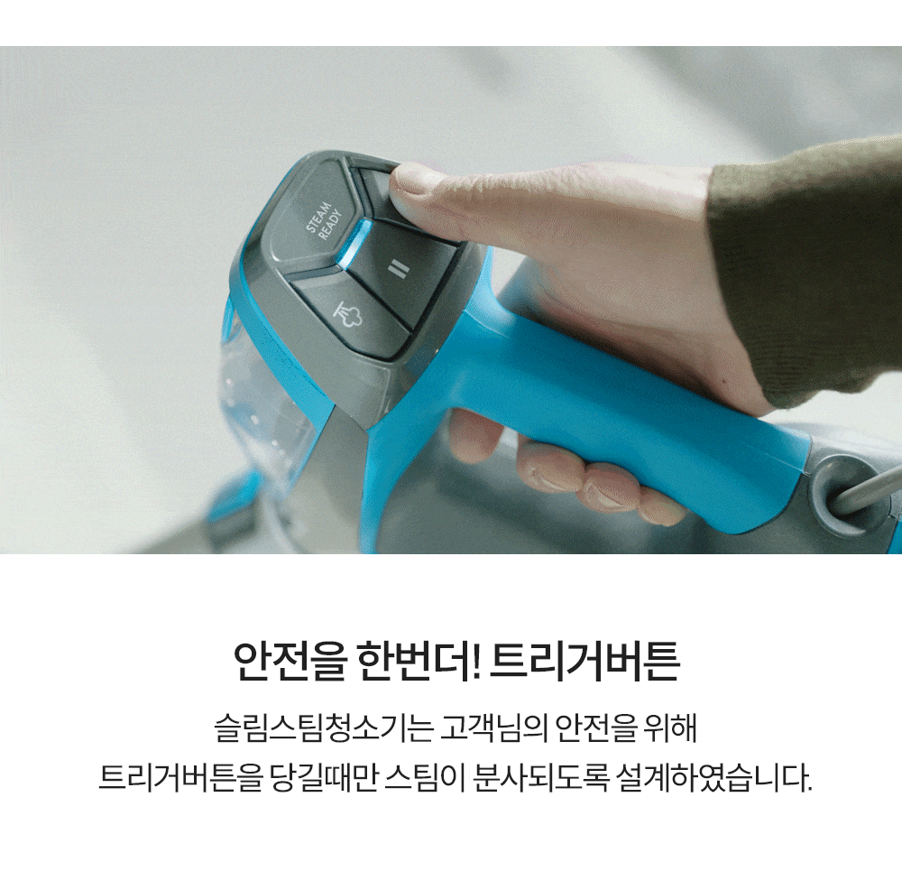 안전한 사용을 위해, 스팀 분사 버튼에서 손을 떼면 자동으로 스팀이 차단됩니다.